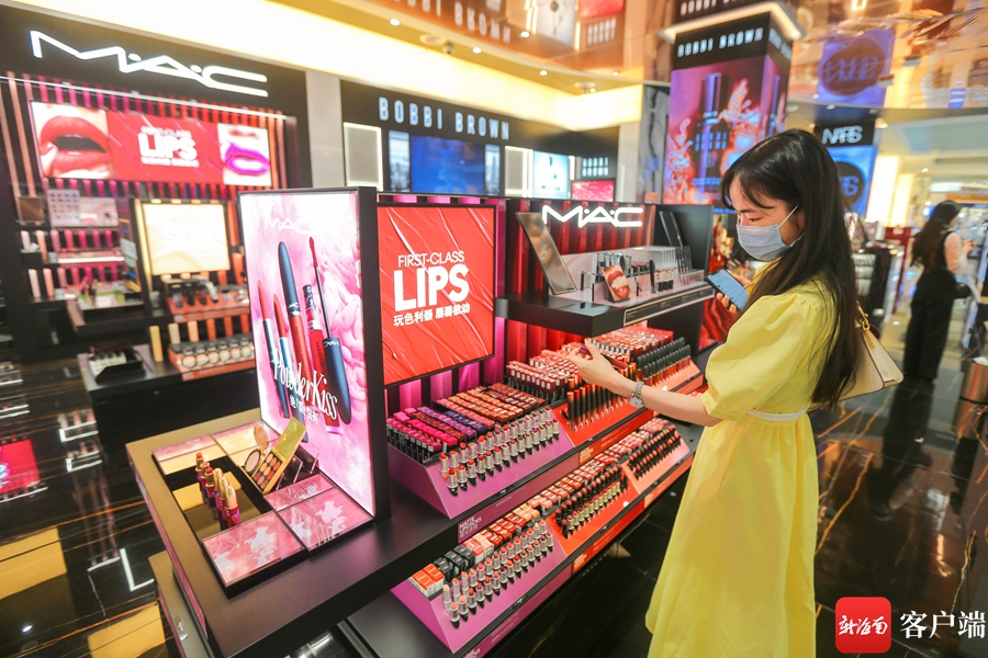 在??厝蚓访舛惓?,游客前來購買免稅品。王程龍 攝