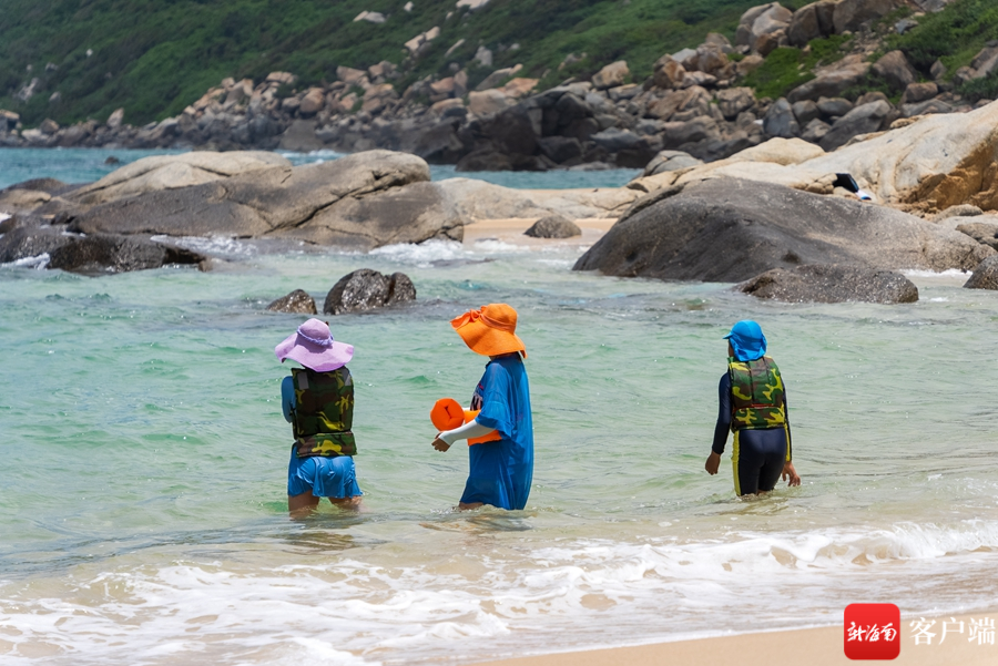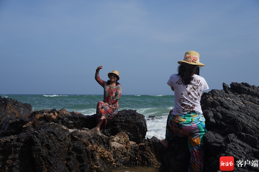 6月20日,一個(gè)星期一的下午,萬寧山欽灣燕子洞迎來了一波又一波的游人。被烈日曬得滾燙的沙灘沒有掃去他們的游興,岸邊崎嶇的礁石也沒能讓他們停下探索的腳步。