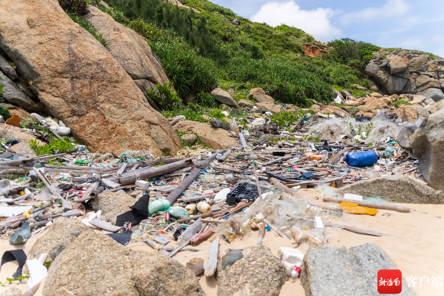 文昌銅鼓嶺鱷魚嘴海邊垃圾隨處可見。記者 曹志 攝