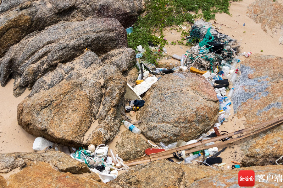 文昌銅鼓嶺鱷魚嘴海邊,垃圾四處散落。記者 曹志 攝