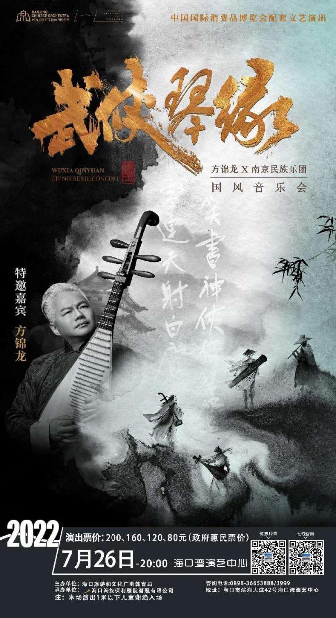 音樂會由享有盛譽的國樂藝術家、打破傳統國樂與西洋樂界限的東西方音樂“破壁人”方錦龍擔任特邀獨奏。他在2019年B站跨年晚會上以一人對陣百人樂團而爆火出圈,帶動了一大批年輕觀眾了解傳統文化,愛上國樂,在青少年中擁有強大的號召力和影響力。國內頗具影響力的南京民族樂團擔任本場音樂會的主奏,以絲竹管弦來詮釋金庸筆下武俠世界中的刀光劍影,以國風旋律喚醒觀眾的歲月記憶。