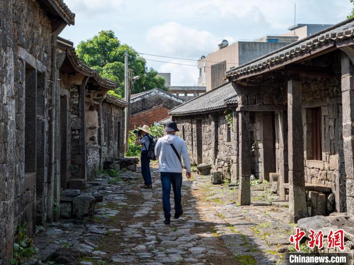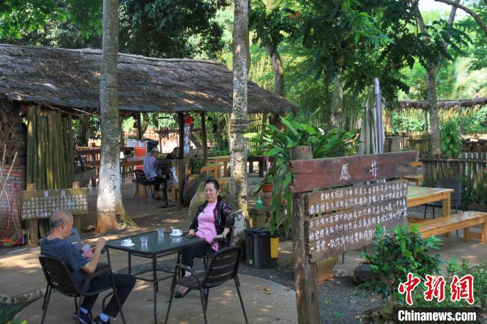 游客在澄邁縣保良村休閑喝咖啡。凌楠 攝