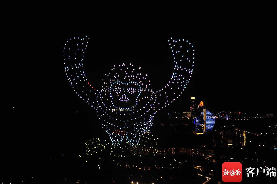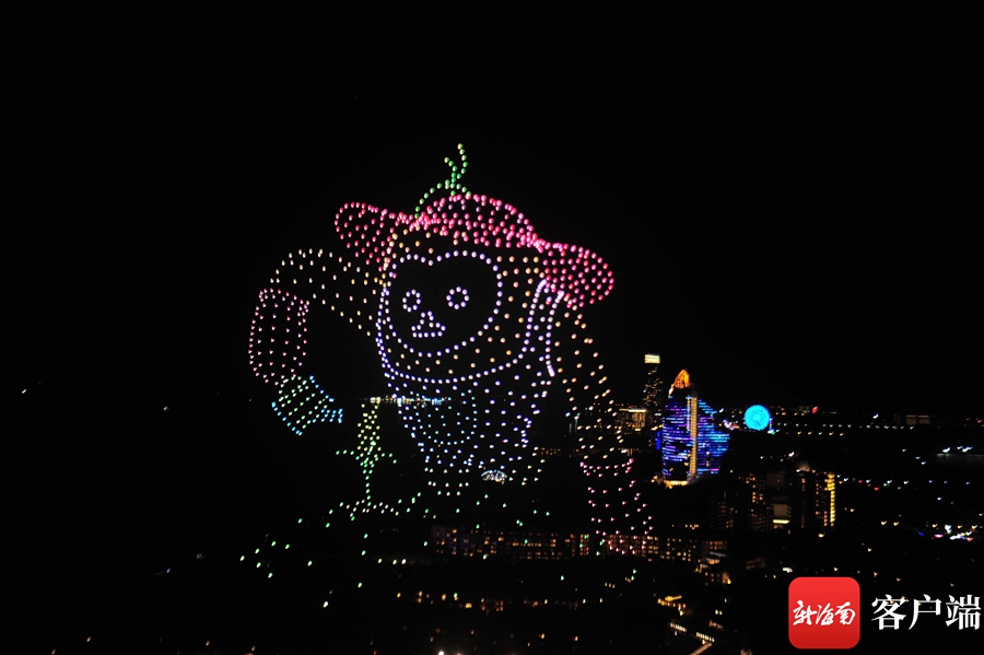 站在高處俯瞰,只見1000架無人機排兵布陣,準備就緒隨后緩緩爬升,在上升到200米的高度后,無人機方陣“花樣”變陣,在空中描繪出多幅精彩的畫面。首先出現的是消博會logo,巨大的圖像浮在空中,象征著本屆消博會面積之廣,總面積10萬平方米,吸引了來自國內外參展品牌2800余個。本屆消博會由商務部和海南省人民政府共同主辦,主題為“共享開放機遇,共創美好生活”,本屆消博會吉祥物以海南長臂猿為原型,形象寓意種業、深海、航天三大未來產業的發展在海南擁有天然的“長臂”優勢,也象征著海南自貿港和消博會將張開雙臂,邀請國內外各界共享發展機遇。