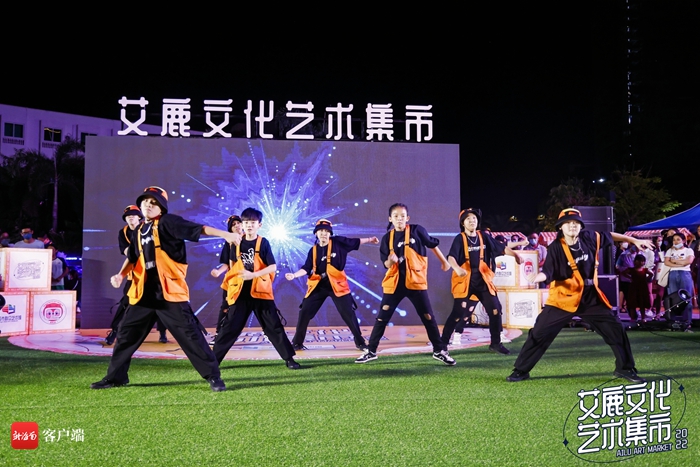 中心舞臺區(qū)上,樂隊和街舞工作室?guī)淼谋硌萼巳既珗觯€有非遺項目傳承人演唱三亞疍歌和崖州民歌,讓全場觀眾浸潤在濃厚的傳統(tǒng)文化氣氛中。