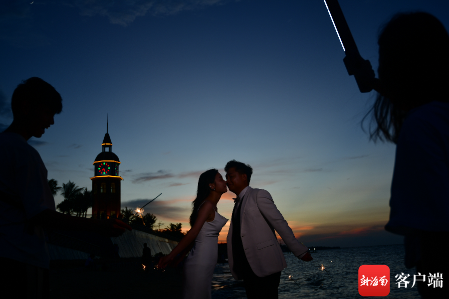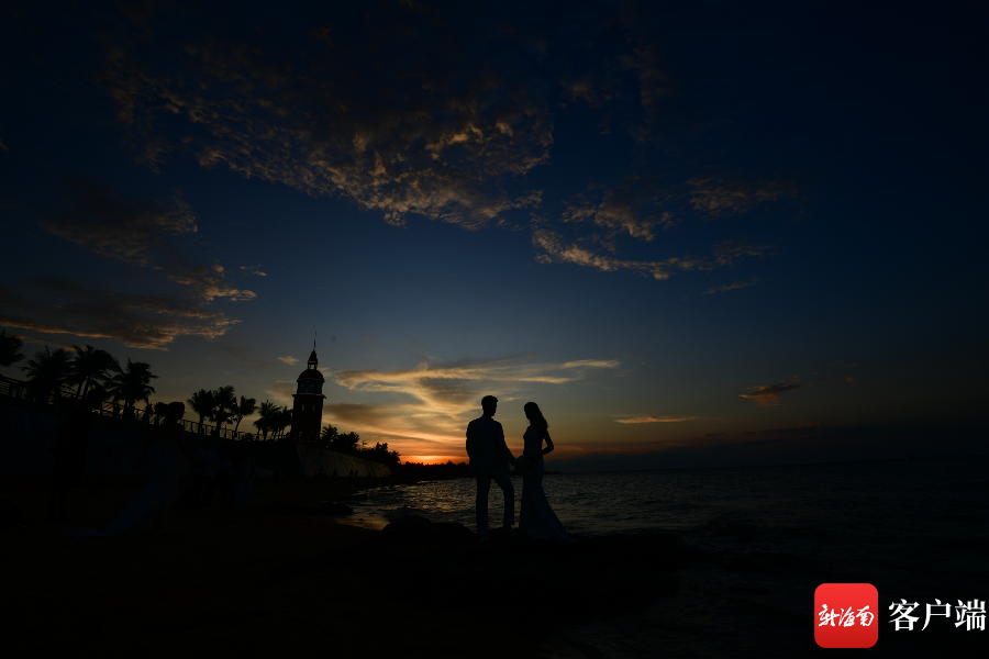 8月1日傍晚,在海口西海岸拍攝婚紗照的新人。記者 陳衛(wèi)東攝