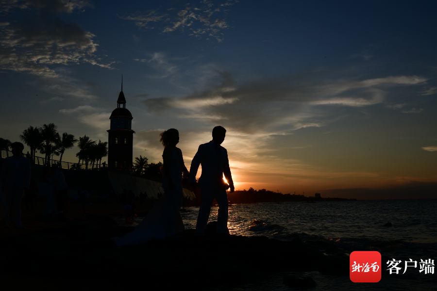 8月1日下午,有10余對(duì)新人在海口西海岸觀海臺(tái)一帶拍婚紗照。