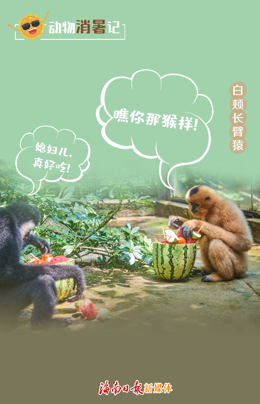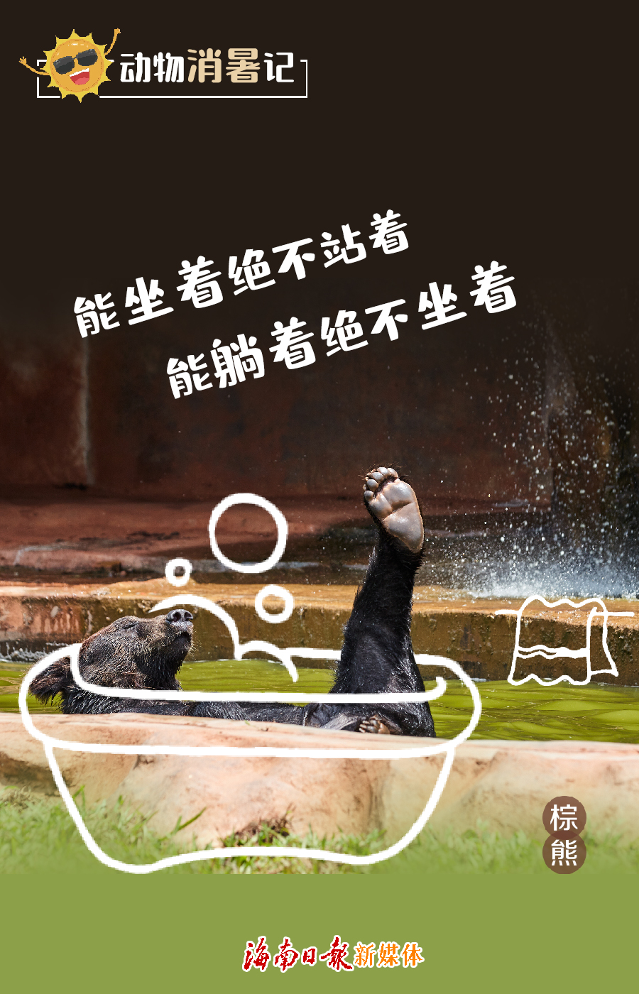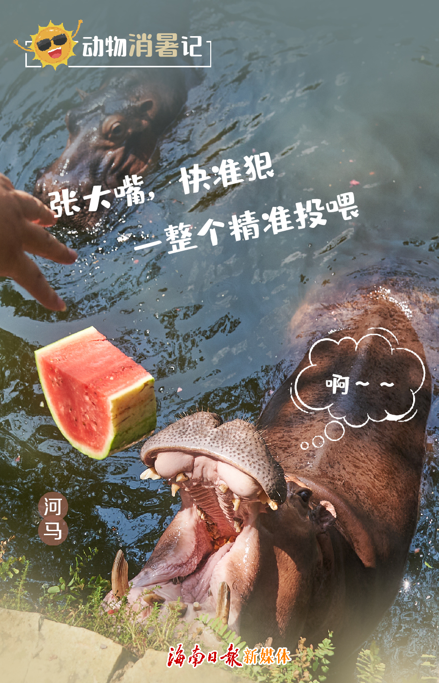 在海南,三伏天的午后,氣溫攀升,濕熱的空氣容易使人無(wú)精打采,動(dòng)物也不例外。面對(duì)陣陣暑氣,為了給動(dòng)物們消暑納涼,海南熱帶野生動(dòng)植物園的保育員們使出了渾身解數(shù)。下面一組創(chuàng)意海報(bào),帶你看看動(dòng)物們的消暑“涼方”。