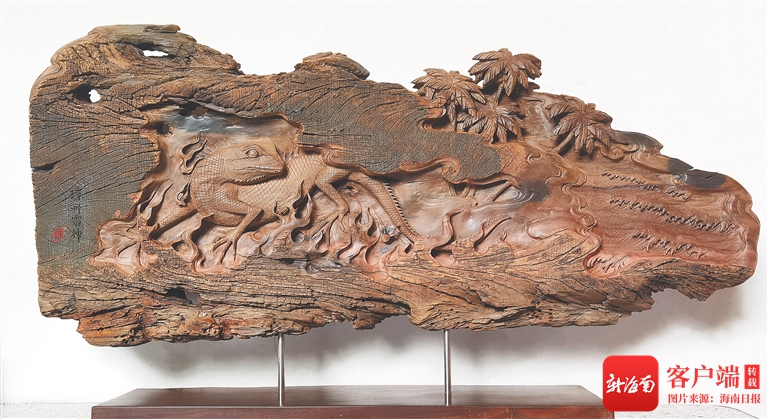 這些年來,為了傳播、振興傳統工藝,吳孔德走進高校任教,同時招收徒弟,傳授技藝。他陸續收徒60多位,其中有12位成為省級工藝大師,這中間又有6位南海工匠。用海南的木料也好,雕刻海南的文化主題也好,他希望具有海南特色的木雕可以為更多人所知。