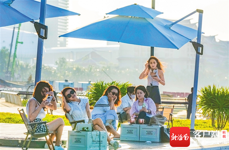 10月5日,在海口市西海岸,游客們在海灘享受椰風海韻。海南日報記者 陳元才 攝