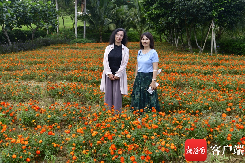 文化名家體驗官徜徉在屯昌夢幻香山共享農莊的花海中。記者 陳衛東 攝