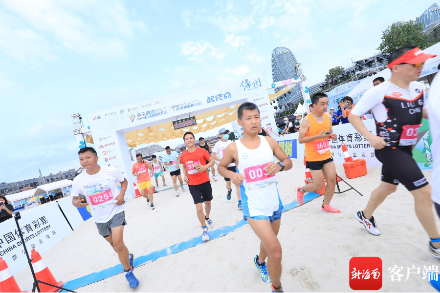 “預備!滴……”當裁判槍聲響起,眾多跑友迎著朝陽出發。2022年海南沙灘運動嘉年華儋州沙灘越海群英會沙灘游跑兩項挑戰賽全程在?;◢u進行,參賽選手按照組委會設置的路線沿著美麗海島奔跑,大家在享受比賽樂趣的同時,將?;◢u美麗海景盡收眼底。
