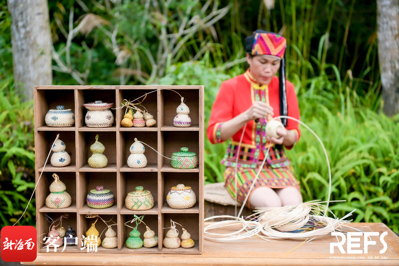 現場展示黎族編藤技藝。