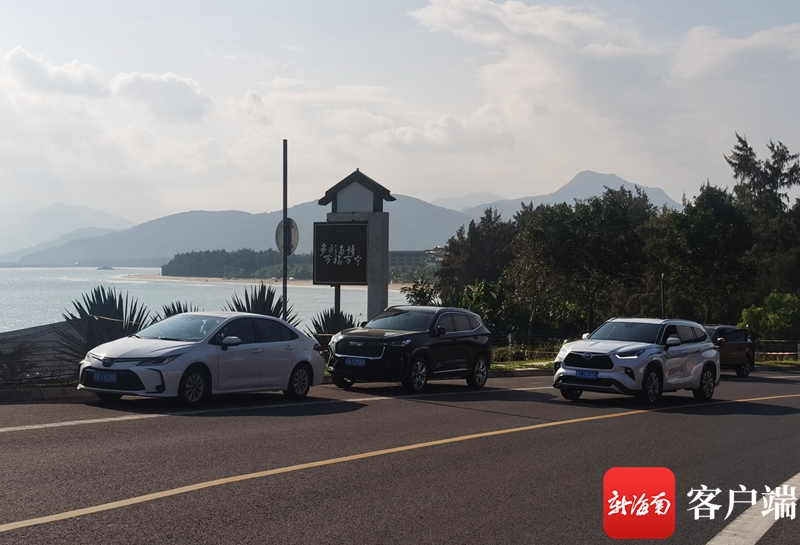 石梅灣旅游公路邊停放的車輛。記者 汪承賢 攝