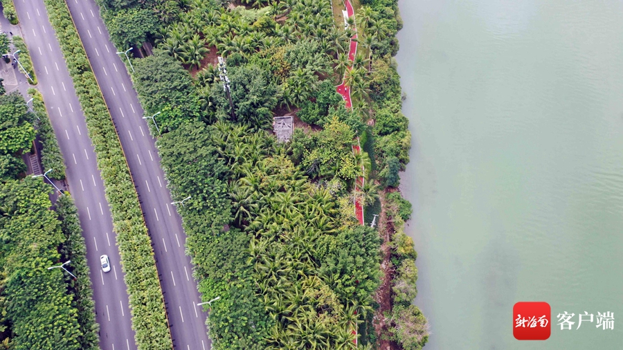 12月15日,航拍三亞臨春河東側綠道。記者 沙曉峰 攝