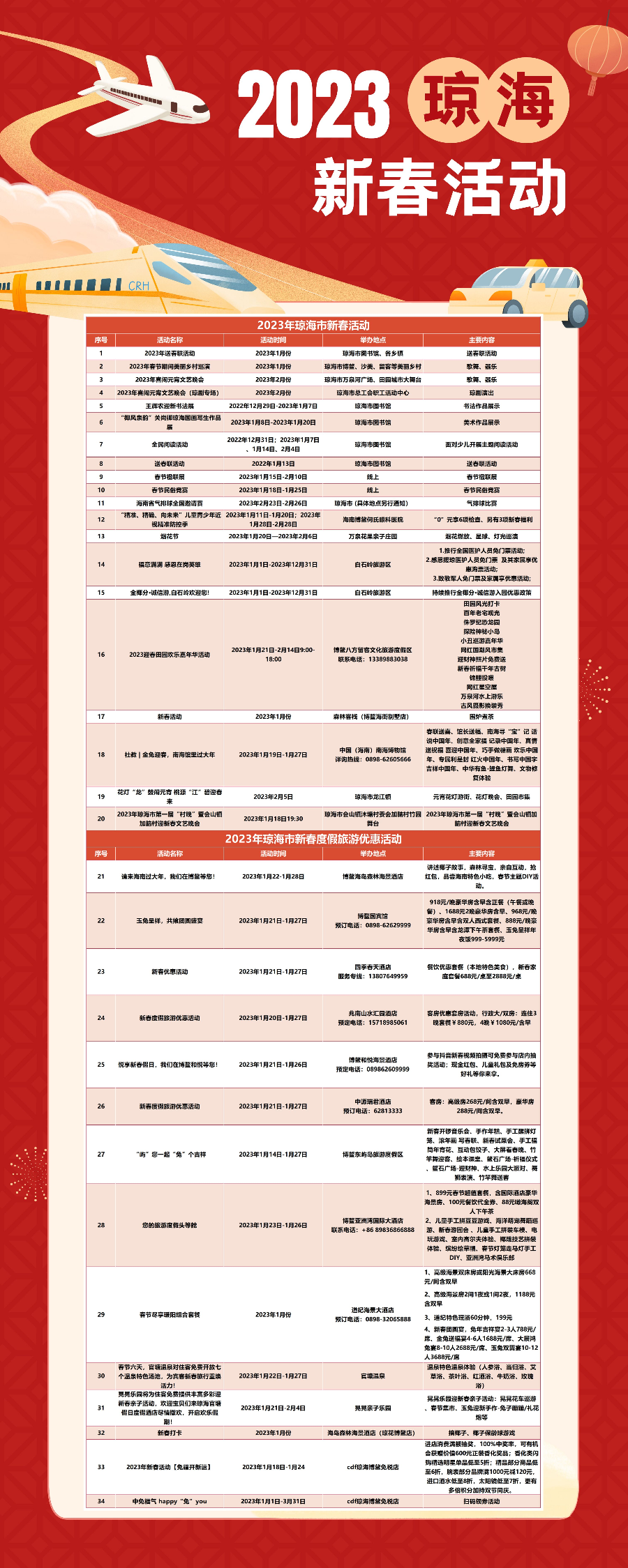 新海南客戶端、南海網(wǎng)、南國都市報1月18日消息(記者蘇桂除)今年春節(jié)假期,瓊海市旅游和文化廣電體育局聯(lián)動各涉旅文企業(yè),共同推出豐富多彩的旅游文化惠民活動,既有各大旅游景區(qū)(點(diǎn))舉辦的不同主題新春潮玩七天樂活動,讓你的旅程更有獲得感,也有文化范的春節(jié)惠民演出,讓你感受更有煙火氣、濃濃年味的瓊海!