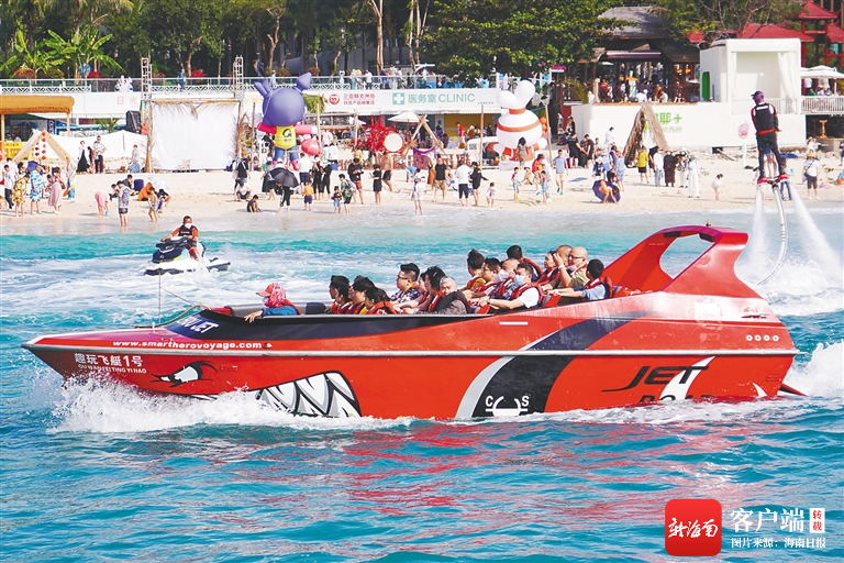 春節黃金周期間,蜈支洲島景區推出趣味“海上游”。海南日報記者 武威 攝