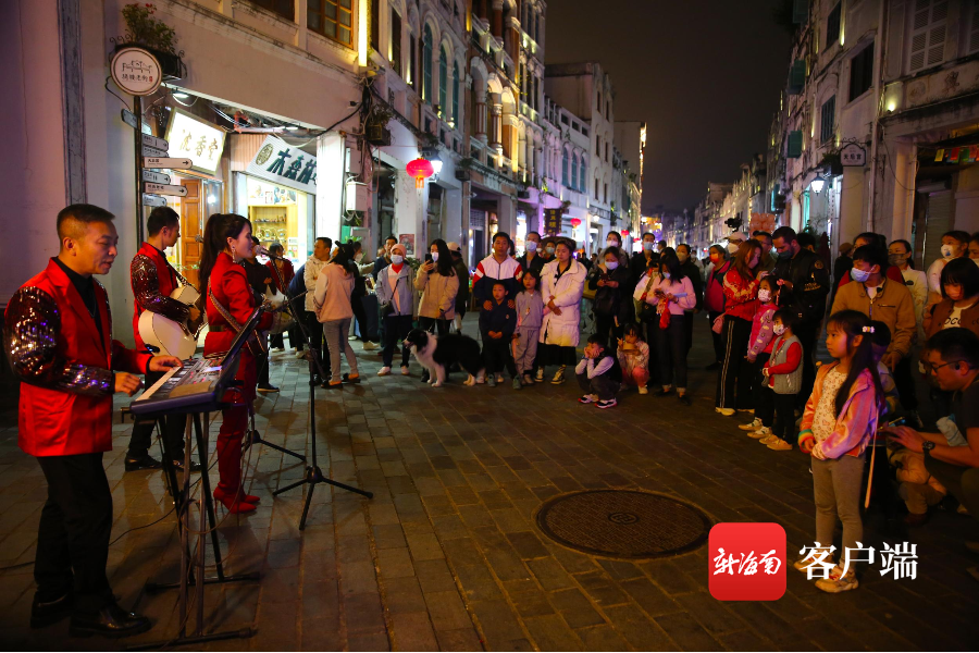 精彩的瓊劇表演、吸引小朋友的糖畫、鬧春快閃表演、龍獅賀春、網紅樂隊、海島特色風情、雜技等多種多樣的迎春表演,讓海口騎樓在春節期間人氣滿滿,游人如織。