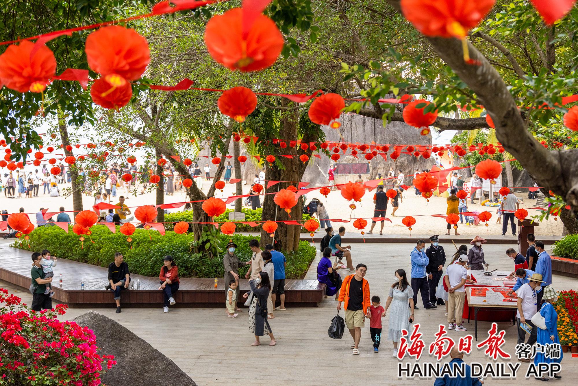 春節期間,三亞天涯海角景區張燈結彩,處處充滿了濃厚的“年味”。