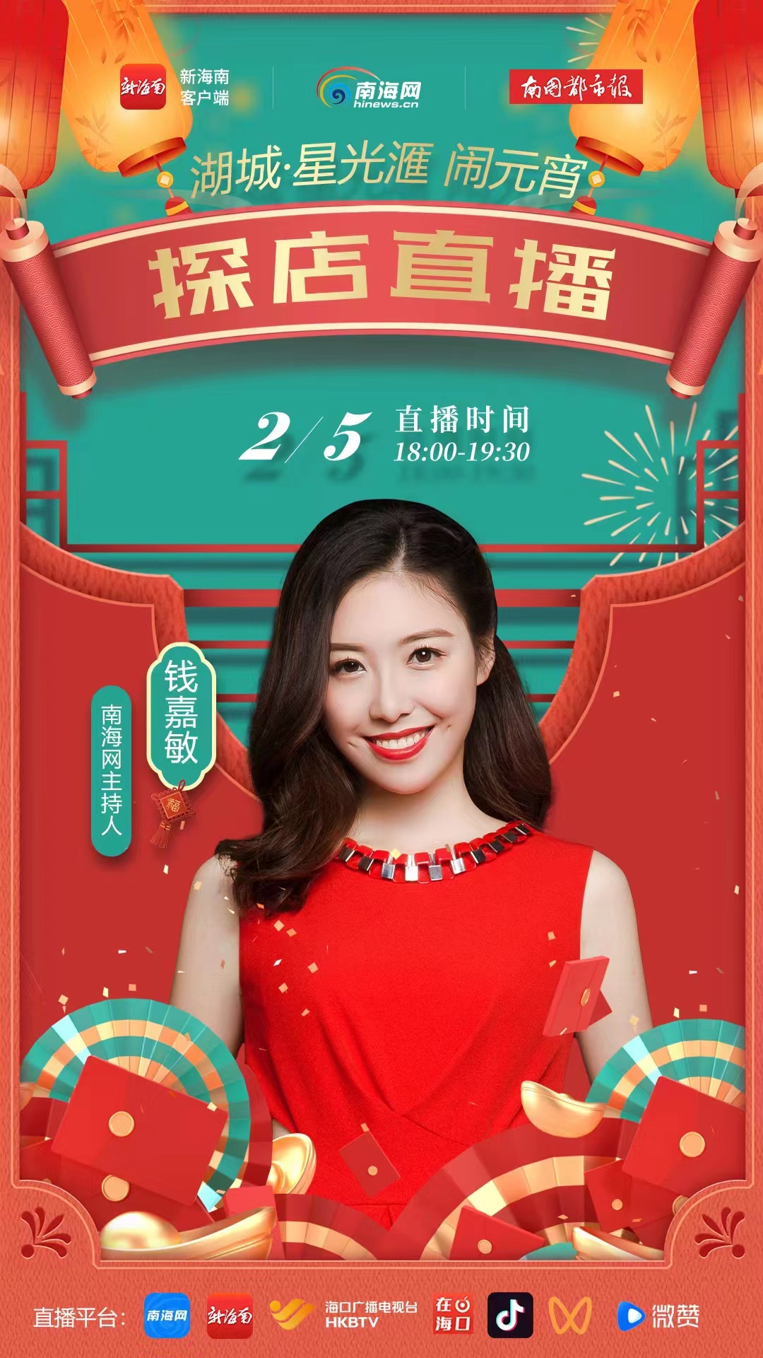 海口瓊山區(qū)5日18時(shí)開啟探店直播,南海網(wǎng)主持人錢嘉敏帶您逛海口湖城星光匯“鬧元宵”。