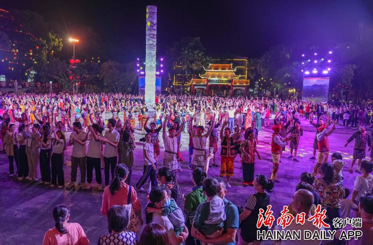 4月17日,在五指山市通什鎮(zhèn)的三月三廣場(chǎng),市民游客參與到共同舞中。海南日?qǐng)?bào)記者 李天平 攝