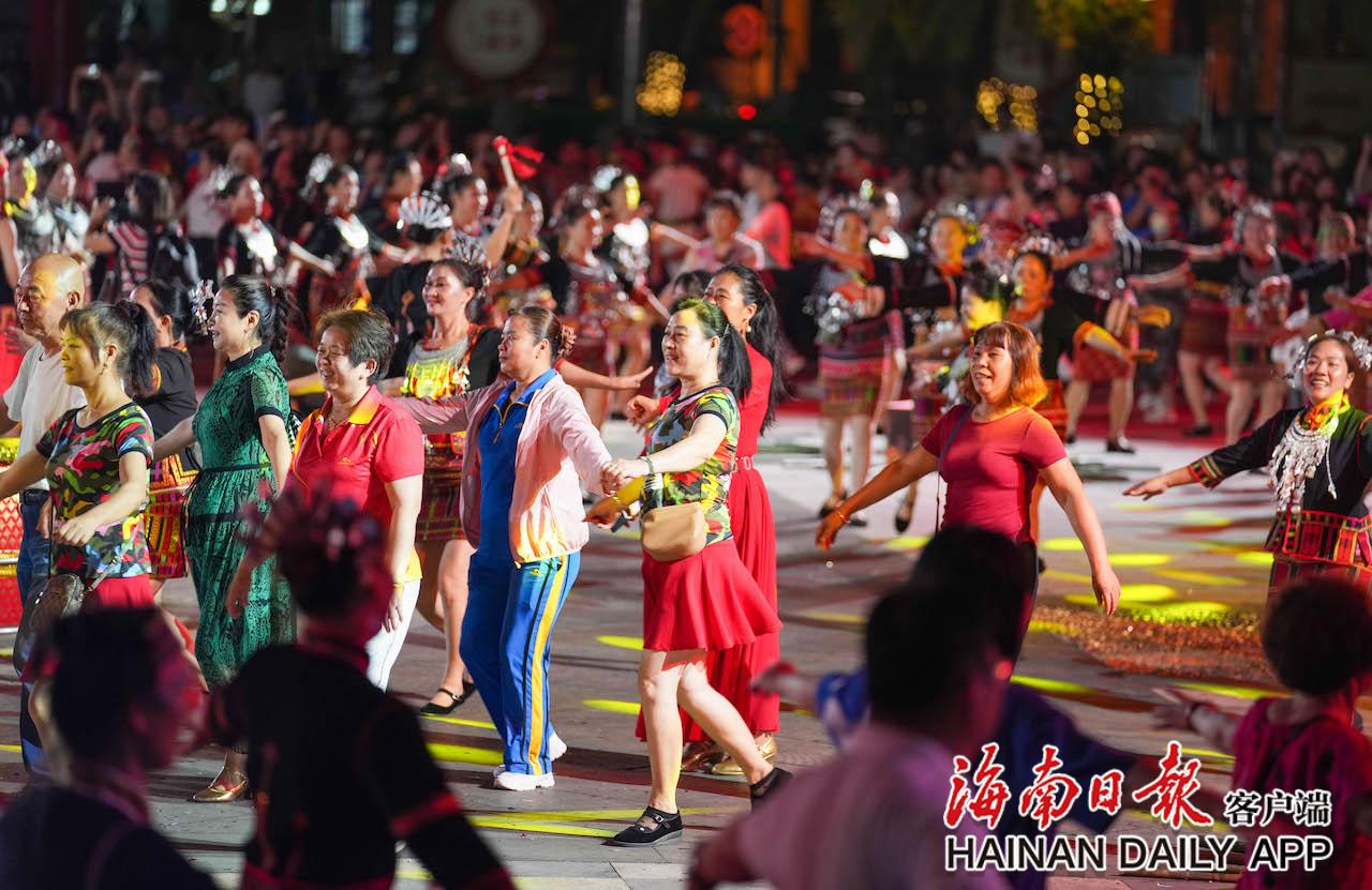 4月17日,五指山市通什鎮(zhèn)三月三廣場(chǎng)的千人共同舞現(xiàn)場(chǎng)熱鬧非凡。海南日?qǐng)?bào)記者 李天平 攝