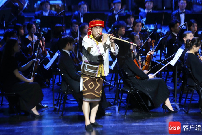 《南海賦》以恢宏大氣的開場,頓時讓現(xiàn)場觀眾如同置身在波光粼粼、島嶼羅列的南海。整場演出以海南非遺民歌“哩哩美”為“主角”,將椰胡、螺號等具有海南本土特色的樂器與交響樂相融合,再通過可視化的舞臺效果,豐富交響音畫的歷史厚度,讓高雅的音樂作品更加貼近觀眾。