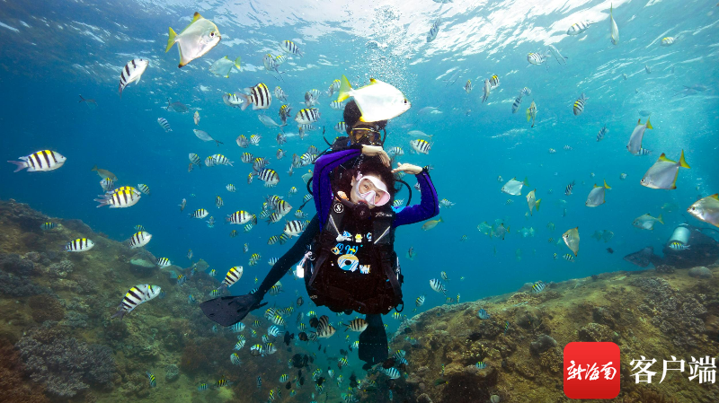 游客在蜈支洲島潛水。蜈支洲島旅游區(qū)供圖