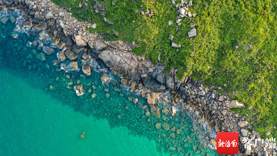 海水碧綠清澈與鵝卵石、巖石、綠植交相輝映。記者 劉洋攝