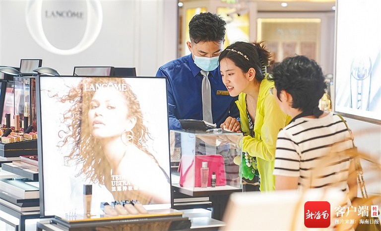 在海口日月廣場海控全球精品免稅城內(nèi),消費者選購免稅商品。高林 攝