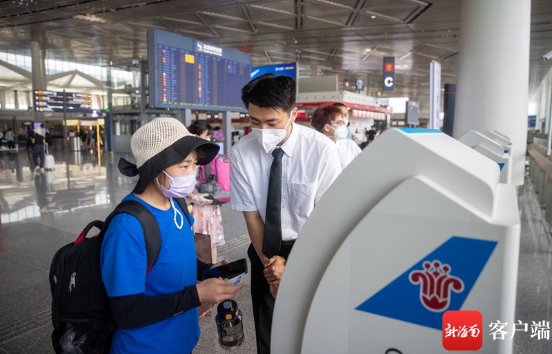 工作人員幫助旅客辦理自助值機。記者 劉洋 攝