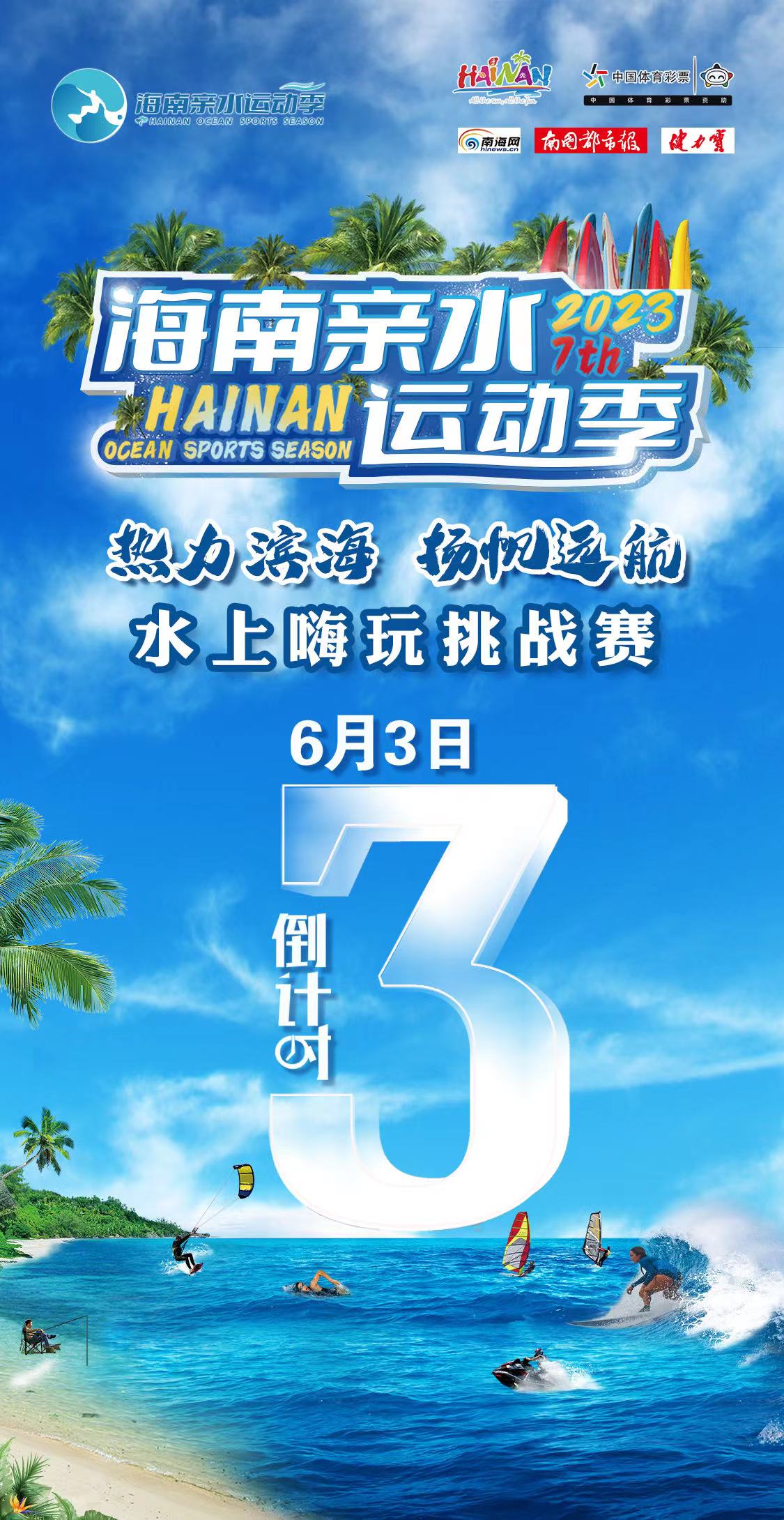海南親水運動季是海南省重點打造的一項體育旅游品牌活動,經過幾年的不斷豐富和發展,已成為對外展示海南自貿港形象和海南省熱帶濱海島嶼風土人情的窗口和平臺?!盁崃I海 揚帆遠航”水上嗨玩挑戰賽是2023海南親水運動季系列活動之一,水上嗨玩挑戰賽的落地,將充分發揮海南省熱帶濱海島嶼自然生態優勢,進一步擴大親水運動在海南的普及與推廣;推動親水運動深入開展,掀起體育旅游和全民健身的新高潮,打造體育旅游示范區和水上運動天堂。
