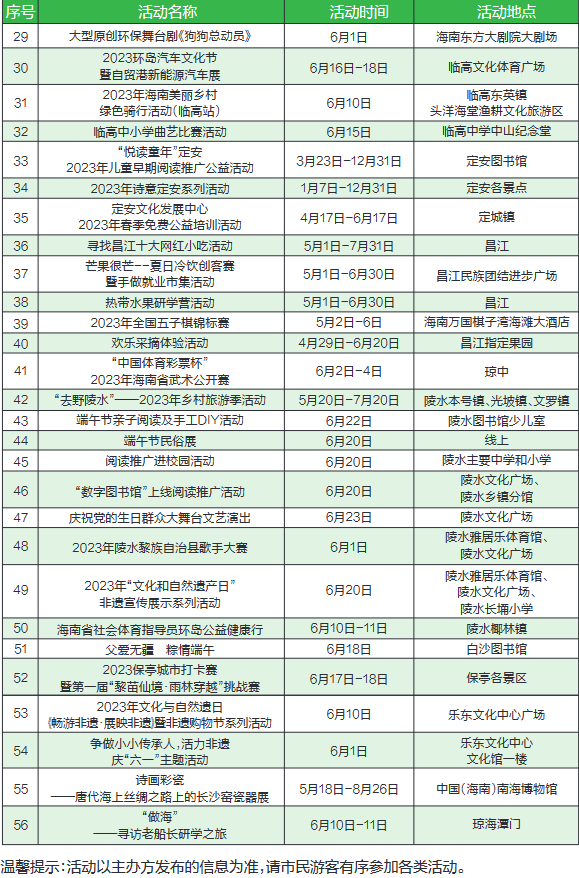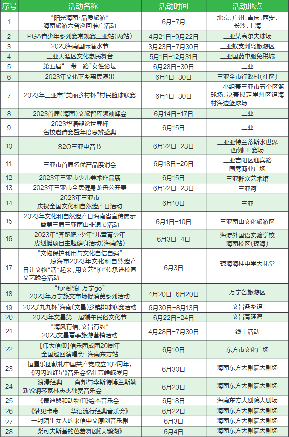 2023年6月海南節慶展會賽事計劃舉辦活動匯總表