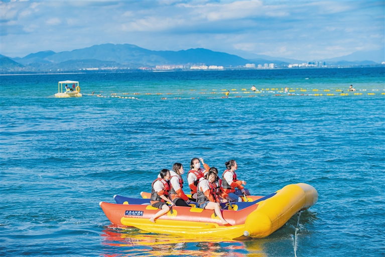 游客在蜈支洲島體驗水上項目。(景區供圖)
