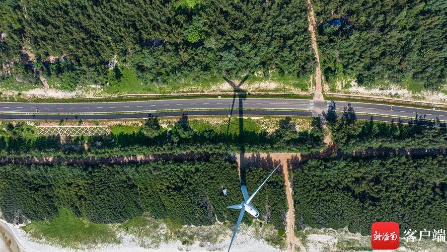 新海南客戶端、南海網6月28日消息(記者 劉洋)在海南環島旅游公路文昌木蘭灣段,白色的風車在海邊排開,藍色的海水輕輕拍打著沙灘,形成別樣的景觀,吸引眾多游客前來游玩打卡。